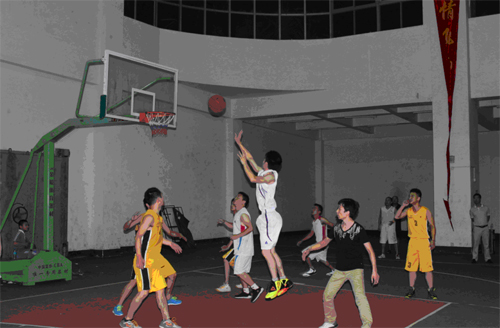 在公司人事部的組織下,光明分公司和總部要開始一場精彩的籃球比賽。時間定在9月6號晚上的7點。下午5時,驅(qū)車向總部出發(fā)啦!7點的時候,比賽正式開始.大家相互團(tuán)結(jié),默契傳球,開局